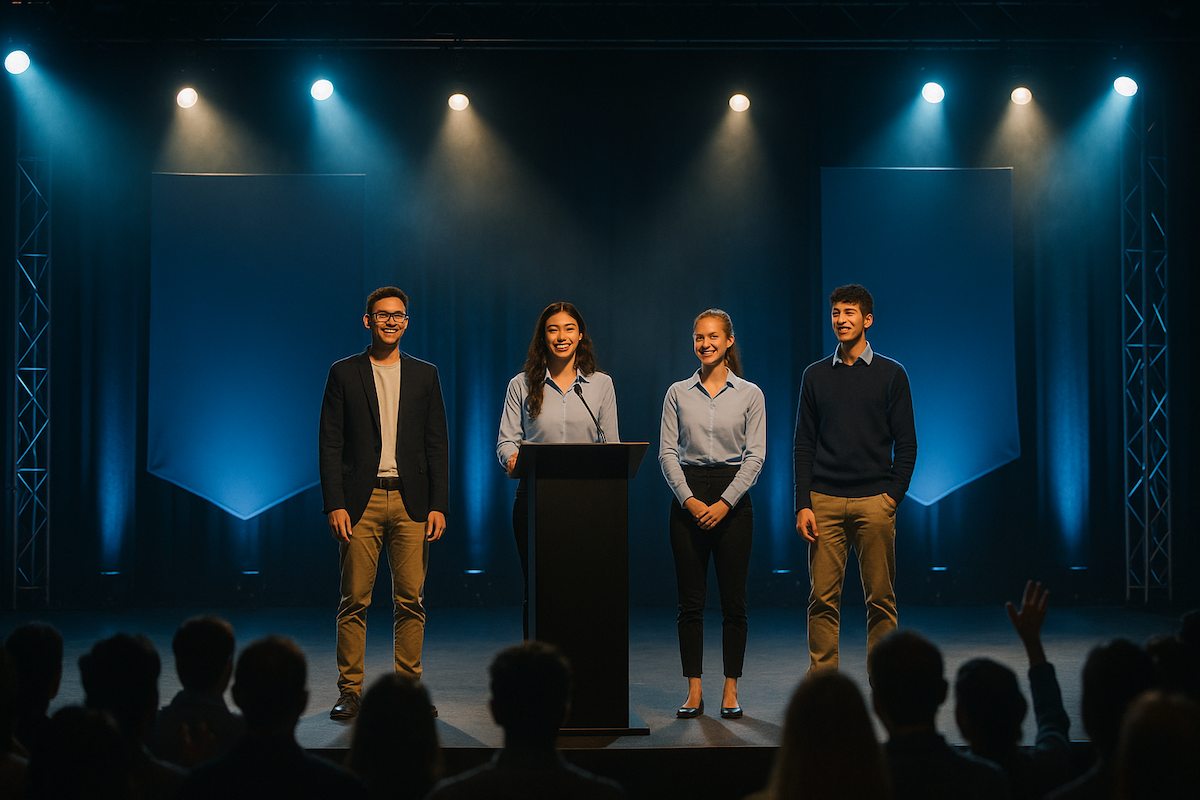 Review student projects during practice pitch days or end of season showcases. Judges evaluate creativity, problem‑solving, impact, and presentation quality.